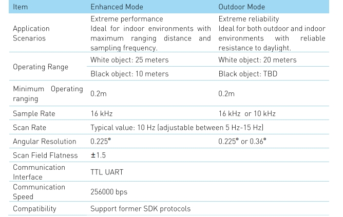 Dual-Mode Operation for Indoor and Outdoor Versatility: The RPLIDAR A3M1 offers the flexibility of two operating modes. Enhanced mode prioritizes maximum range and sampling rate for optimal indoor mapping performance. Outdoor mode, on the other hand, prioritizes robust resistance to sunlight interference, preventing malfunctions in outdoor environments.